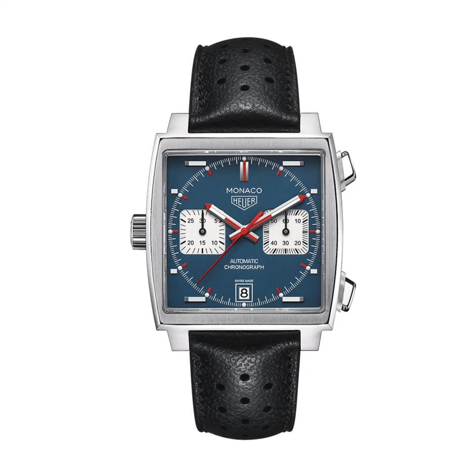 1969年に世界初の「自動巻クロノグラフ時計」かつ世界初「完全防水スクエア型時計」として誕生した不朽の名作コレクション。レーシングを体現する究極のデザインは、レッドのクロノグラフ針やトラックのアスファルトをイメージして特別な仕上げを施したブラックカーフスキンストラップにより生み出されています。映画『栄光のル・マン』で着用され「キング・オブ・クール」の愛称を冠するスティーブ・マックイーンのアイコンともいえる革命的な「キャリバー11 」エディションは左サイドにセットされたリューズが特徴的で、手で巻き上げる必要がない事を示唆しています。